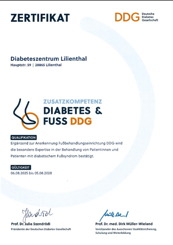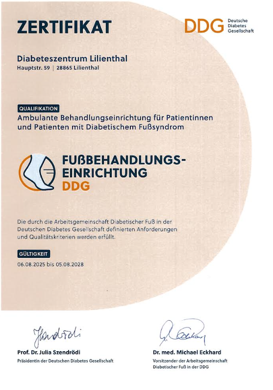 Wir sind ein von der Deutschen Diabetesgesellschaft (DDG) zertifiziertes Behandlungszentrum für Diabetiker Typ 1 und Typ 2 sowie Fußambulanz DDG.